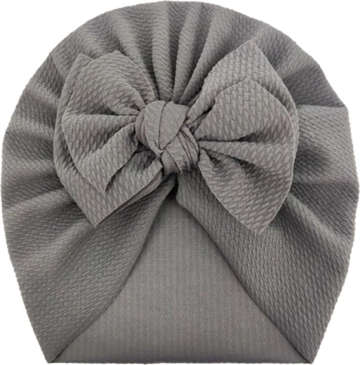 Turban pentru copii cu fundiță, pălăriuță pentru fetițe - gri