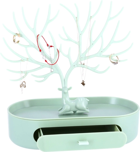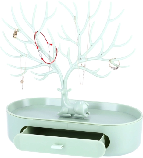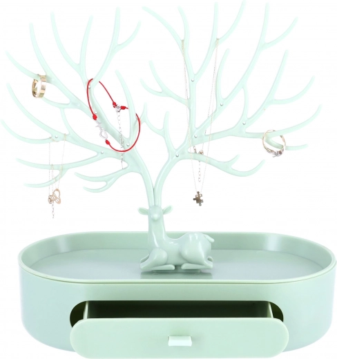 Suportul va arăta frumos ca o decorațiune de sine stătătoare și, în plus, are o funcție practică. Poate fi folosit pentru depozitarea bijuteriilor, cum ar fi brățări sau inele. Culoarea delicată se potrivește perfect în orice interior și decorul acestuia. În plus, are un sertar mic în care încap și câteva bijuterii.