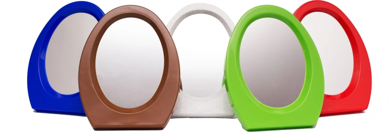 Oglindă cosmetică de înaltă calitate, cu carcasă din plastic. Redă chiar și cele mai mici detalii, facilitând aplicarea machiajului, coafura și procedurile cosmetice la domiciliu. Oglinda are o bază stabilă, care asigură stabilitatea.