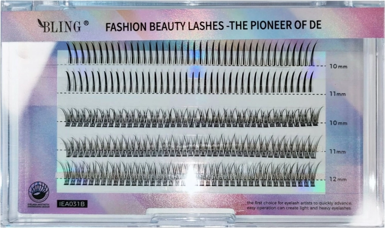 Oferă privirii tale profunzime! Mănunchiurile de gene din mătase BLING sunt extrem de moi și ușoare. Se folosesc pentru alungirea și îndesirea genelor. Un mănunchi conține până la 10 fire. Grosimea de 0,15 mm asigură un efect natural de îndesire. Într-un pachet se găsesc 60 de mănunchiuri. Sunt disponibile în 4 lungimi și două tipuri de curbare.