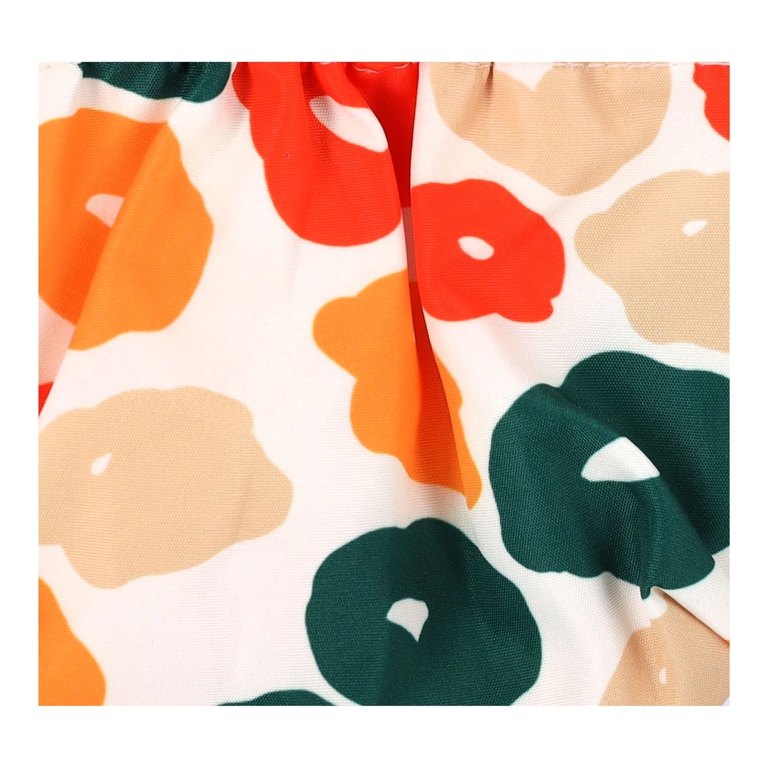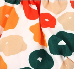 Imprimeu expresiv în tonuri de verde, portocaliu și roșu, care oferă echipamentului tău un aspect proaspăt și se asortează ușor.