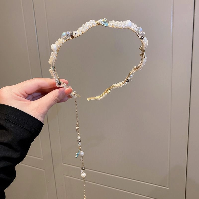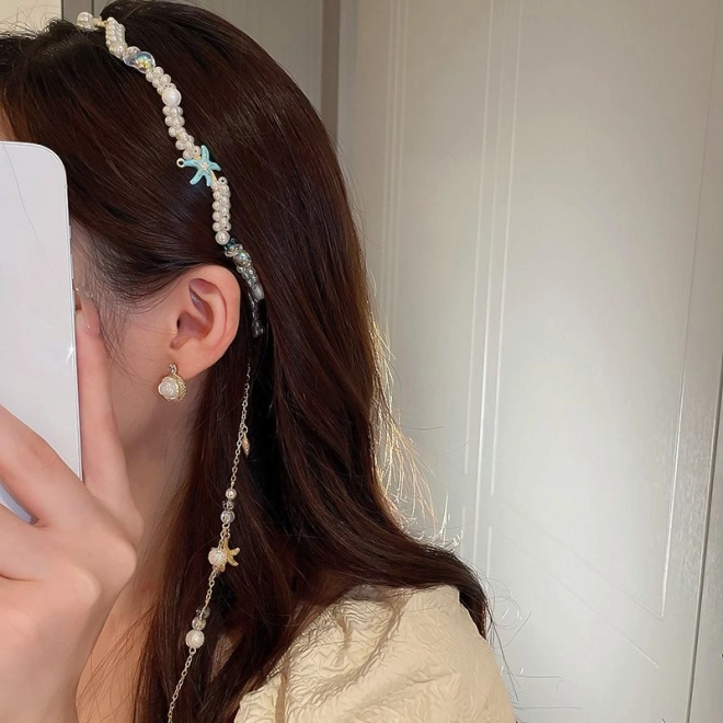 Bentiță elegantă pentru păr, cu motiv delicat de scoici și decor din perle artificiale, care oferă oricărei coafuri un farmec romantic. Este confortabilă la purtare, blândă cu părul și ține perfect firele rebele departe de față. Ideală pentru coafuri de nuntă și de seară, dar și pentru uz cotidian.