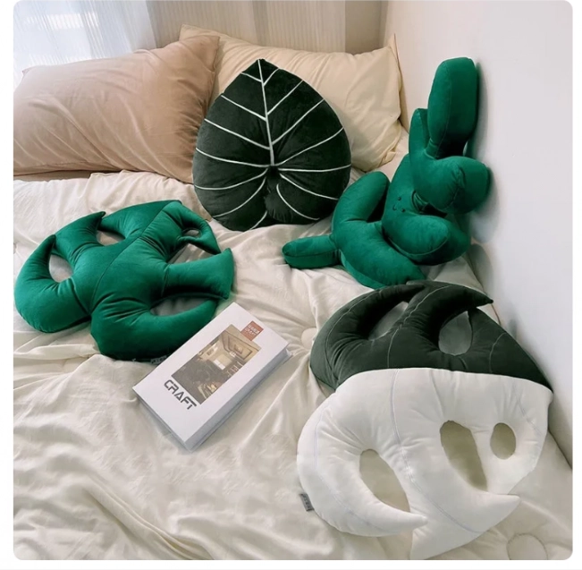 Perna decorativă originală în formă de frunză luminează instantaneu canapeaua, patul sau colțul de lectură. Suprafața moale din crystal fleece este plăcută la atingere, în timp ce umplutura elastică își păstrează forma și oferă confort în momentele de relaxare.