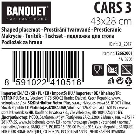 Suportul pentru copii din plastic, cu model CARS, va bucura orice copil. Avantajul acestor suporturi este că se curăță ușor, ceea ce garantează confort maxim la curățenie. Dimensiuni: 43 x 29 cm.