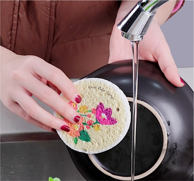 Datorită capacității de a absorbi apa și de a crea spumă, buretele elimină eficient impuritățile de pe vase.