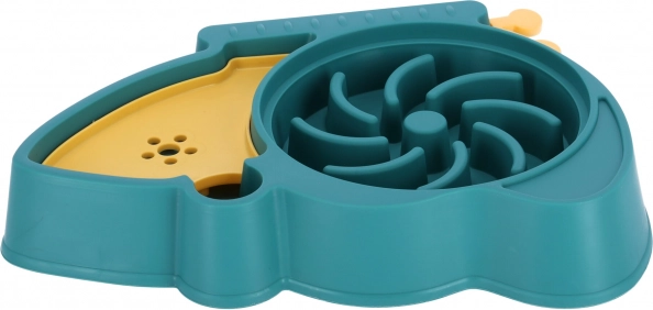 Bolul cu dozator practic de apă este soluția ideală pentru proprietarii de animale de companie care doresc să asigure acces constant la apă proaspătă pentru companionul lor, chiar și atunci când nu sunt acasă. Partea inferioară a produsului este prevăzută cu un bol care încetinește ingestia hranei, ajutând astfel la prevenirea problemelor digestive cauzate de mâncatul prea rapid. Este modelat astfel încât să prelungească timpul în care animalul nostru de companie consumă hrana. Bolul are un labirint de canale care oferă animalului o provocare. Dimensiunea recompenselor plasate determină nivelul de dificultate. Forma sa ergonomică facilitează, în plus, curățarea