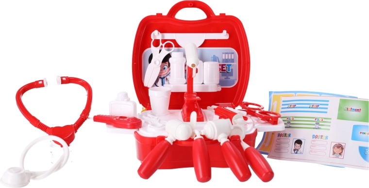 Acest set medical este ideal pentru copii de la 3 ani. Permite depășirea fricii de vizita la medic și în același timp dezvoltarea imaginației. Setul de 25 de piese oferă ușurință în utilizare datorită genții practice.