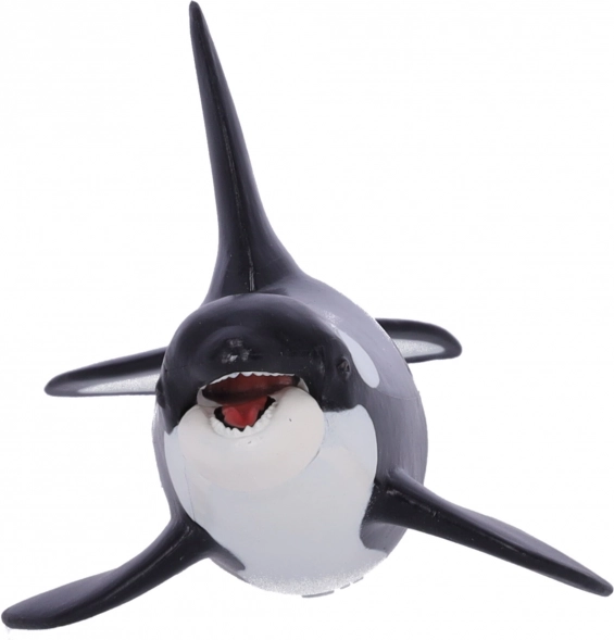 Proporții fidele, înotătoare dorsală pronunțată și colorit autentic alb-negru pentru un efect maxim de realism în joacă și expunere.