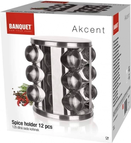 Suportul rotativ pentru condimente BANQUET Akcent îmbină funcționalitatea și stilul datorită designului său sofisticat. Acest suport include: