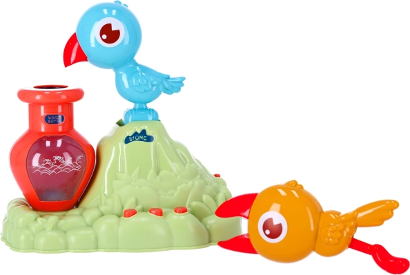 Jucăria include, de asemenea, o mămică-pasăre care aduce copilului pietricele. Copilul își poate exersa abilitățile manuale introducând aceste pietricele în ulcior. Pentru a scoate pietricelele din jucărie, este suficient să folosiți fereastra din partea din spate.