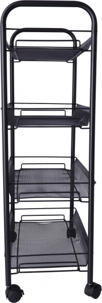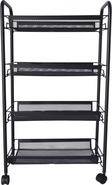 Datorită celor patru roți, raftul este ușor de mutat, ceea ce este excelent pentru cei care au nevoie de flexibilitate în organizarea spațiului. Fabricat din metal de înaltă calitate, care garantează durabilitate și stabilitate pe termen lung.