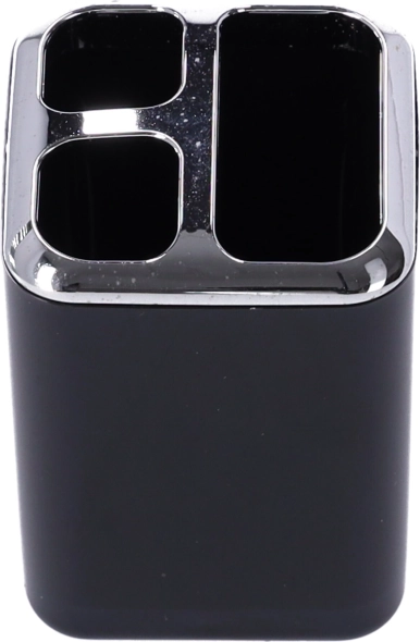 Pahar practic, cu mai multe compartimente, păstrează periuțele, pasta și mărunțișurile organizate într-un singur loc. Accentul metalic și suprafața lucioasă completează băile moderne și ușurează întreținerea.