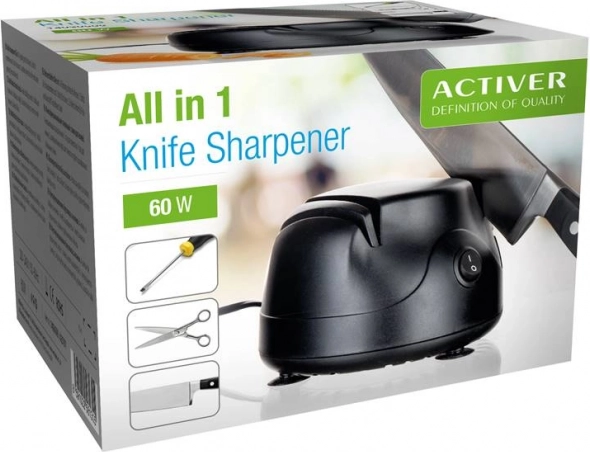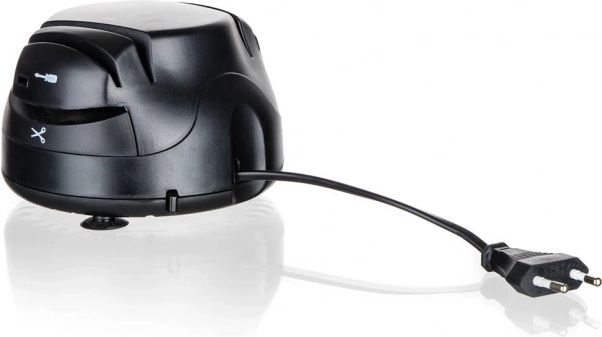 Dispozitivul este echipat cu 4 canale de ghidaj pentru cuțite, 1 canal pentru șurubelniță plată și 1 canal pentru foarfeci, astfel încât poți ascuți comod mai multe tipuri de instrumente într-un singur loc. Două discuri abrazive permit șlefuire grosieră și fină. Întreținerea este facilitată de orificiile din partea inferioară pentru evacuarea reziduurilor metalice și de cordonul de strângere pentru depozitare ușoară și sigură.