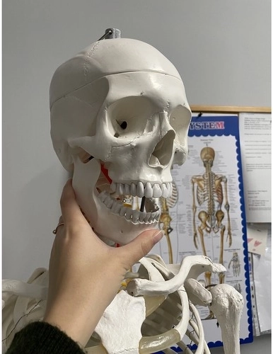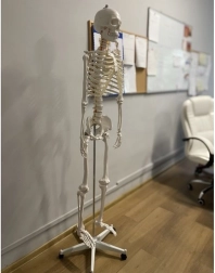 Modelul anatomic al scheletului uman de 180 cm este un instrument ideal pentru predare și studiul corpului uman. Fabricat din plastic PVC durabil, este stabil pe un suport de aluminiu cu roți, ceea ce facilitează mutarea sa după nevoie.