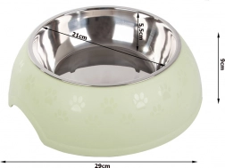 Acest bol mare din metal cu un volum de 1200 ml este soluția perfectă pentru hrănirea câinilor și pisicilor tale. Construcția robustă asigură o durată lungă de viață, iar designul său practic previne deteriorările. Bolul este format din două părți – o bază din plastic și un insert din oțel inoxidabil. Aceste părți pot fi descompuse ușor și folosite separat.