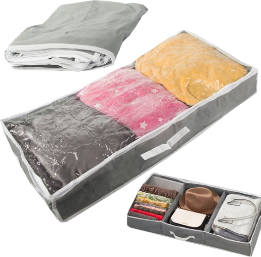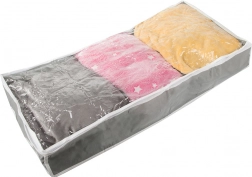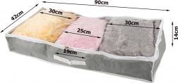 Prin plasarea sub pat sau la baza dulapului, economisiți mult spațiu. Organizatorul este realizat din material respirabil și este echipat cu mânere practice pentru extragerea ușoară.