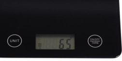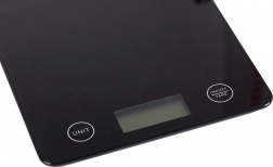 Cântar de bucătărie digital elegant, cu platformă din sticlă neagră și precizie de 1 g, ideal pentru copt și gătit. Oferă funcția TARE, ecran LCD lizibil, butoane tactile și selecția unităților g/oz/lb/ml. Datorită opriri automate și întreținerii ușoare, este alegerea ideală pentru orice bucătărie modernă.