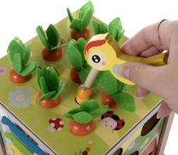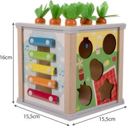 Cubul educațional din lemn este un instrument excelent pentru distracție și învățare. Fiecare față a cubului oferă o activitate diferită care ajută copilul să-și dezvolte abilitățile: