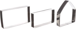 Cu acest set de forme tăietoare pentru căsuța din turtă dulce, te vei bucura de multă distracție în timpul coacerii. Conține 10 elemente care permit asamblarea tuturor părților casei, de la pereți până la acoperiș și decorațiuni.
