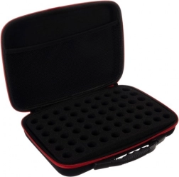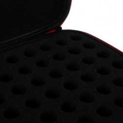 Inserția din spumă cu decupaje precise fixează în siguranță până la 60 de sticluțe de până la 10 ml – ideal pentru lacuri de unghii, uleiuri esențiale sau alte mărunțișuri.