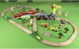 Descoperiți distracția cu o pistă de tren din lemn de 3,2 m, care include 57 de piese atent realizate. Copiii pot construi propriile trasee, se pot juca cu trenul cu vagoane unite magnetic și își pot dezvolta prin joc motricitatea fină, percepția spațială și creativitatea. Setul include vehicule, figurine, animăluțe, copaci, clădiri și o macara funcțională pentru și mai multă imaginație.