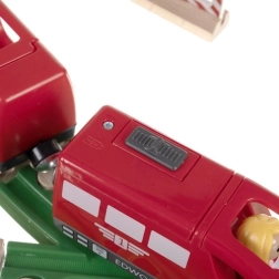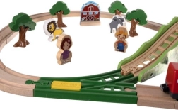 - Set mare cu 57 piese: șine inclusiv poduri, tren de pasageri, macara, figurine, copaci, clădiri, animăluțe și vehicule de lucru.