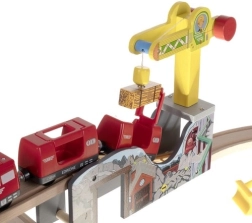 - 26 piese de șină inclusiv poduri; 4 copaci (fiecare din 2 piese); 2 indicatoare; 2 clădiri (fiecare din 2 piese); 1 balustradă cu bază; 2 containere; 5 figurine; tren de pasageri – 3 piese; 2 animăluțe; macara; excavator; basculantă