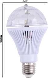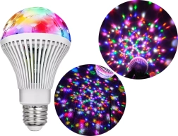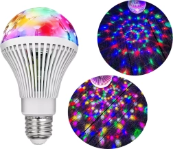 Acest bec LED RGB rotativ cu soclu universal E27 creează modele luminoase dinamice datorită cupolei prismatice și motorului integrat. Fasciculele colorate se schimbă lin și se dispersează pe pereți și tavan, fiind ideal pentru petreceri acasă, seri de karaoke, aniversări pentru copii și mici discoteci.