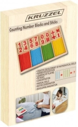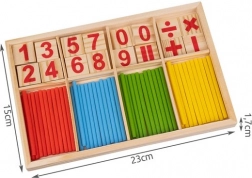 Bețișoarele colorate și cuburile din lemn cu cifre și simboluri îi ajută pe copii să înțeleagă operațiile de bază prin joc.