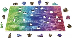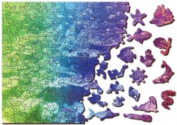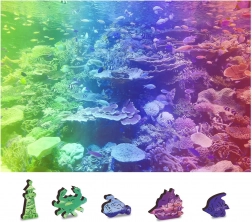 Puzzle-ul din lemn Recif de corali 2‑în‑1 oferă o experiență unică de asamblare – pe o parte asamblezi după motivul colorat, pe cealaltă după forme, cu un model repetitiv. O parte dintre piese au forme originale de animale, obiecte sau construcții, iar datorită detaliilor evidențiate cu laser par adevărate mici figurine.