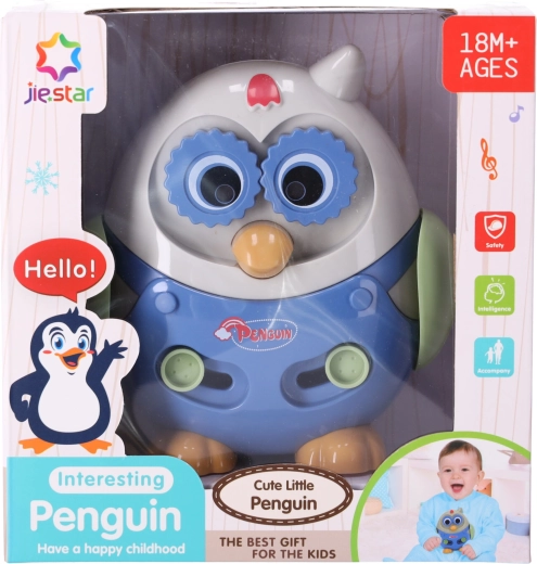 Pinguinul Dansator are un design colorat și jucăuș, care atrage atenția copiilor.