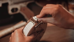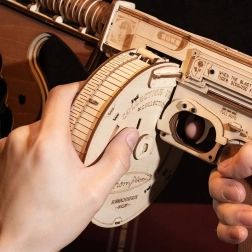 Această machetă mecanică din lemn oferă o experiență realistă a iconicului pistol-mitralieră THOMPSON. Datorită tăierii laser precise, piesele se potrivesc perfect, iar asamblarea este lină și satisfăcătoare. După finalizare, obții un model impresionant cu mecanism funcțional pe elastice, care chiar trage.