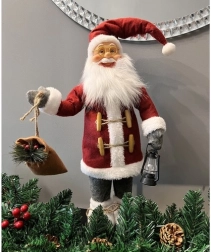 Această decorațiune de Crăciun cu Moș Nicolae, bogat ornamentată, atrage privirea de la prima vedere. Mantaua roșie cu blăniță albă, barba albă lungă și ochelarii aurii creează un aspect clasic, nelipsit de Crăciun. Moș Nicolae poartă un lampion și are pe spate un sac plin de daruri, astfel că aduce instant atmosfera de sărbătoare.