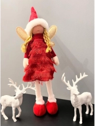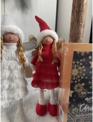 Această figurină fermecătoare de înger/elf în culoare roșie va aduce în casa dvs. magia Crăciunului. Aripile aurii strălucitoare reflectă frumos lumina, iar ținuta de iarnă cu detalii tricotate, rochia tip helancă și căciulița cu blăniță creează un aspect cald și festiv.
