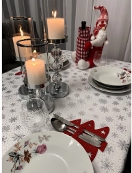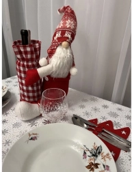 Husa practică este reutilizabilă – trebuie doar să o tragi peste o sticlă standard de vin sau altă băutură și în câteva secunde ai gata un ambalaj cadou decorativ. Se potrivește perfect cu motivele roșu-alb și nordice, astfel încât îți va fi ușor să asortezi întregul styling festiv.