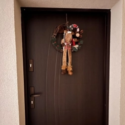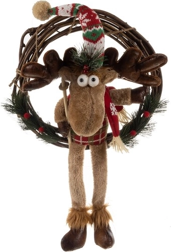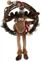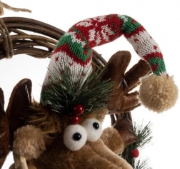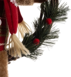 Coronita de Craciun pentru usa aduce un plus de sărbătoare și căldură locuinței tale. Această decoratiune festivă este realizată cu un simpatic renifer îmbracat cu salopete care se potrivesc cu căciula și eșarfa sa.