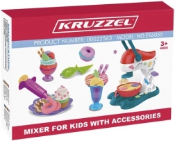Acest set creativ colorat, cu mașină de presat în formă de mixer, le permite copiilor să preseze, să ștampileze și să modeleze cu ușurință diverse bunătăți. Pârghia mixerului se manevrează ușor, astfel încât se descurcă și cei mai mici. Include și o seringă pentru extrudarea plastilinei și un bol cu forme.