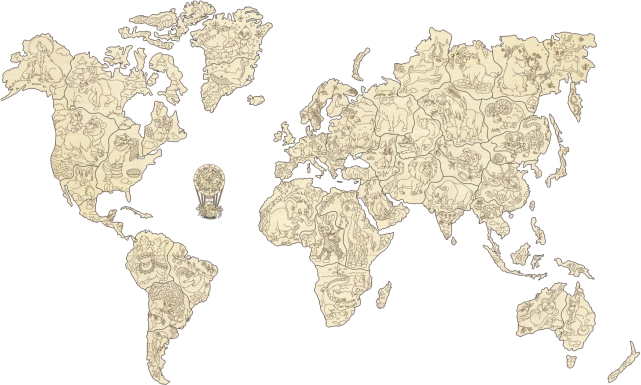 Descoperiți lumea într-un mod ludic. Harta din lemn cu animale la scara 1:57 mil. este decupată cu laser cu precizie din placaj de mesteacăn, astfel încât se remarcă prin linii curate și fibra naturală a lemnului. Se potrivește grozav ca decorațiune și ca material didactic – copiii își extind în mod distractiv cunoștințele despre continente, oceane și animale.