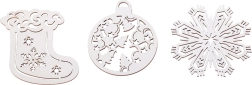 Set elegant de 20 de decorațiuni de Crăciun din lemn, albe cu decupaje fine, care adaugă casei tale farmecul sărbătorilor. Decorațiunile sunt ușoare și rezistente, ideale pentru brad și alte aranjamente. Mixul de motive diverse și dimensiunea aproximativă de cca 7 cm permit combinare ușoară și utilizare repetată în fiecare an.