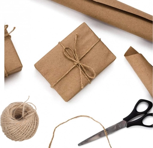 Sfoara naturală din iută completează perfect hârtia reciclabilă și creează un ambalaj frumos, sustenabil, fără plastic.