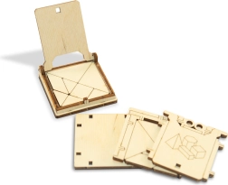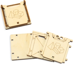 Modelele formelor geometrice de bază pot fi vopsite după asamblare, transformându-le într-un ornament personalizat pentru interior. Sunt potrivite pentru vârsta 14+, iar pentru o asamblare calculează aproximativ 60 de minute. Ambalajul nu conține plastic – WOODEN CITY pune accent pe producția sustenabilă.