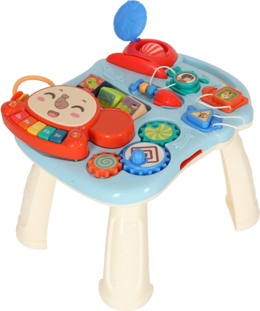 Tabla și masa oferă elemente interactive care susțin abilitățile senzoriale și curiozitatea copilului.