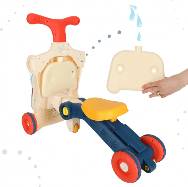 Produsul oferă cinci modificări: mers, trotinetă, bicicletă alergătoare, masă interactivă și tablă suspendată.