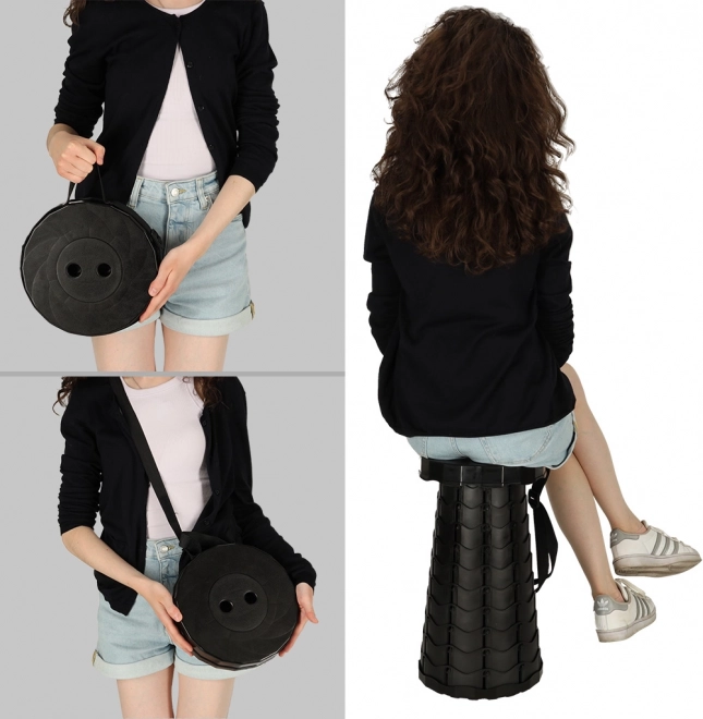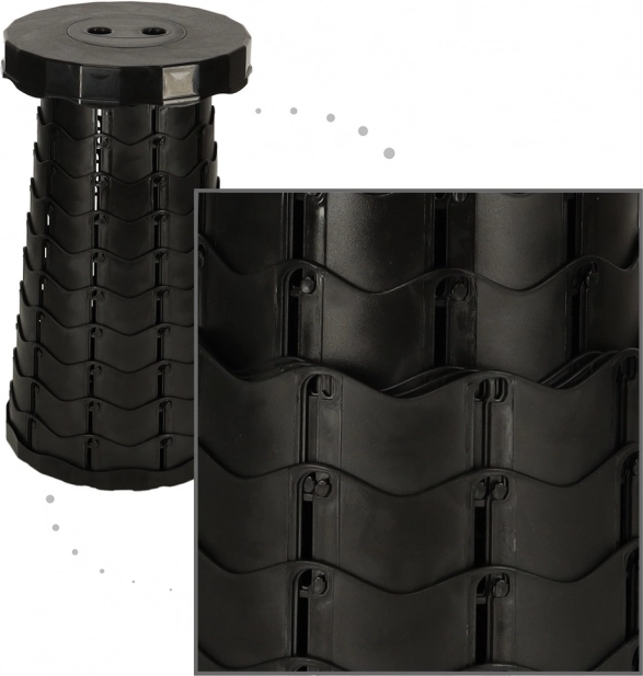 Acest scaun telescopic portabil oferă un loc confortabil în timpul așteptării la coadă, la festival, la camping sau la pescuit. Se desface într-o clipă – pur și simplu rotești bazele, extinzi la înălțimea dorită, iar mecanismul se blochează sigur împotriva plierii accidentale.