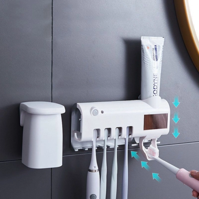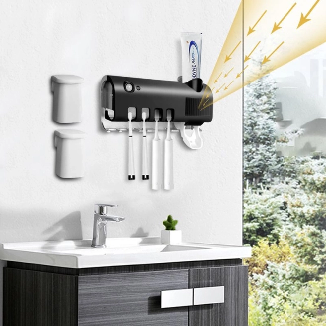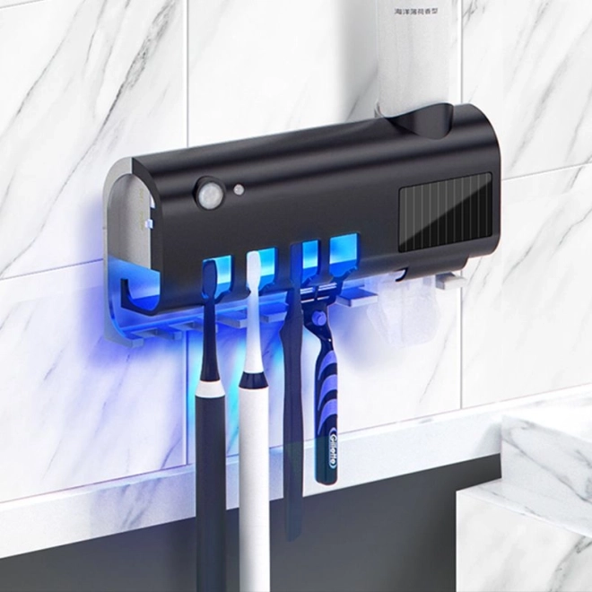 Optimizați igiena dentară cu suportul nostru de periuță de dinți dotat cu sterilizator UV și distribuitor de pastă de dinți. Aparatul elimină până la 99.9% din bacterii, asigurându-vă că periuța dvs. este curată la fiecare utilizare.