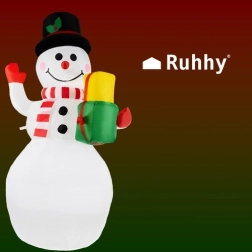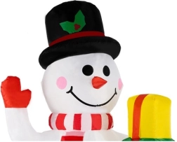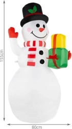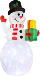Omul de zăpadă gonflabil cu proiector LED integrat este ideal ca decorațiune pentru utilizare exterioară și interioară. Este prevăzut cu o pălărie neagră, nas roșu și ține cadouri. Datorită utilizării materialelor rezistente la apă și durabile, garantează o durată lungă de viață și un aspect uimitor ani de zile. În plus, omul de zăpadă are un compresor încorporat care umflă rapid structura în forma perfectă.