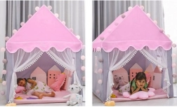 Adăugați camerei copilului o atmosferă de basm. Acest cort textil în formă de căsuță creează un colțișor primitor pentru citit, relaxare și jocuri nesfârșite. Este inclus un șir de 20 de luminițe LED cotton balls cu lumină albă caldă, care creează o ambianță plăcută. Intrarea cu draperii și două ferestre din plasă fină asigură intimitate și circulația aerului.