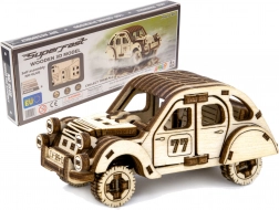 Acest model de mașină de raliu oferă o combinație captivantă de distracție creativă și decorațiune elegantă pentru interior. Piesele din placaj de mesteacăn de primă clasă se îmbină perfect – fără lipici și șuruburi – iar rezultatul este un automobil retro impresionant, cu numeroase detalii fine.