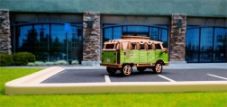 Decupajele autentice ale ferestrelor, ușilor și roților oferă minibuzului un aspect vintage unic. Excelent ca decorațiune și piesă de colecție.