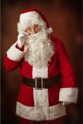 - Echipare completă (13 piese) – jachetă, pantaloni, căciulă, perucă, barbă cu mustață, mănuși, ochelari, curea, acoperitori pentru încălțăminte, sac și clopoțel.